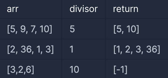 divisor로 나누어 떨어지는 element가 하나도 없다면 배열에 -1을 담아 반환하세요.