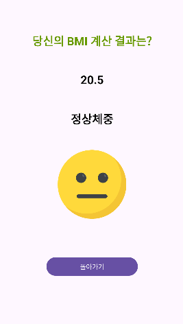 이제 이 변수들을 이용해서 BMI치수가 몇일때 저체중,정상체중,, 텍스트가 나올지 정해주고, 그에 따라 이미지랑 색깔도 바꿔준다