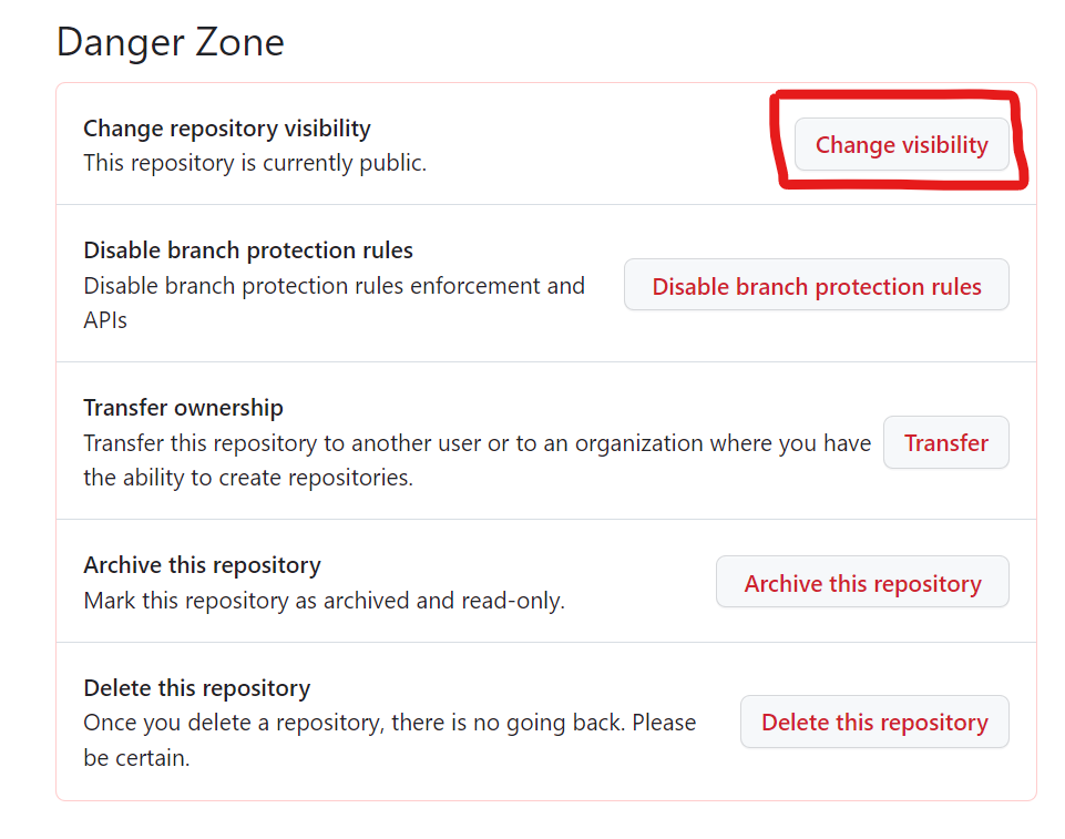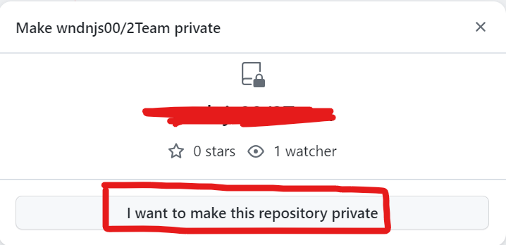 경고사항 잘 읽어보고 Make this repository private 클릭