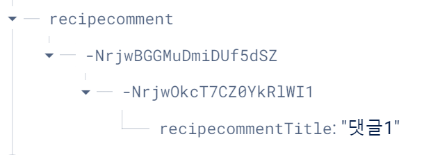 // 파이어베이스에 recipecomment 추가 (레시피게시물 안에 댓글)
