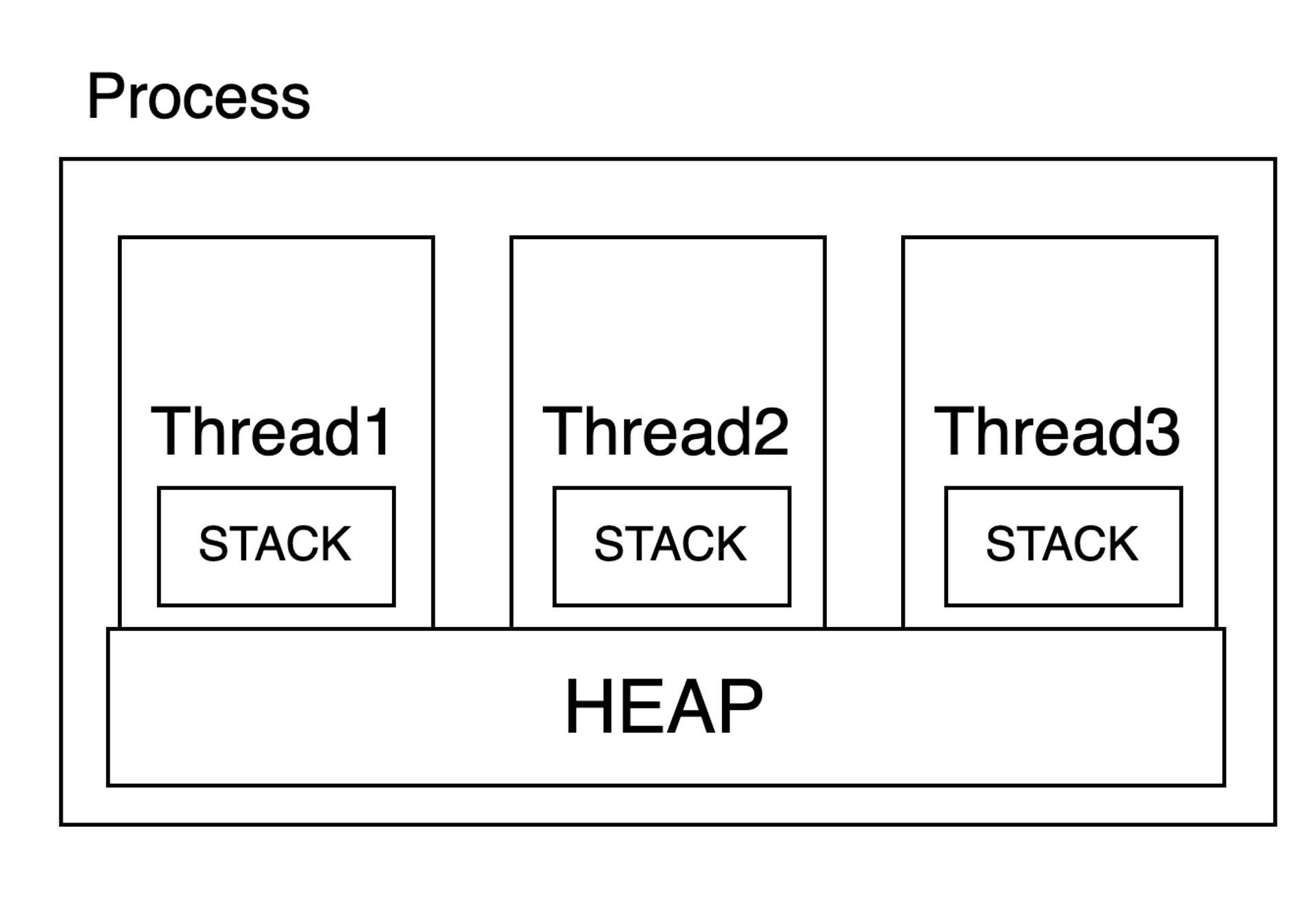 - 각 Thread가 독립적인 Stack 메모리 영역을 가진다
