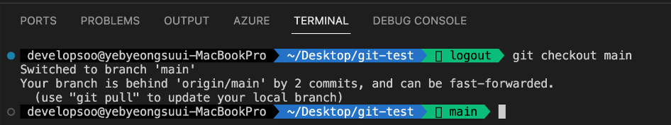 먼저 내 컴퓨터에서 기본브랜치(main) 으로 이동