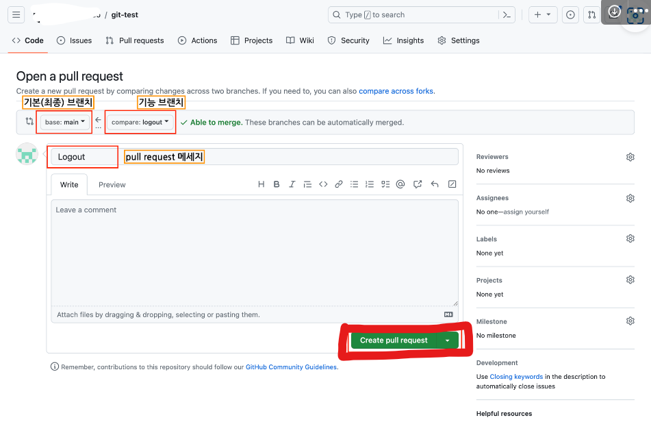 -> Merge pull request 버튼 클릭
