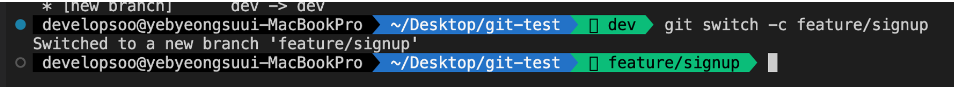 - 기능 브랜치 생성 (git switch -c 기능브랜치명)