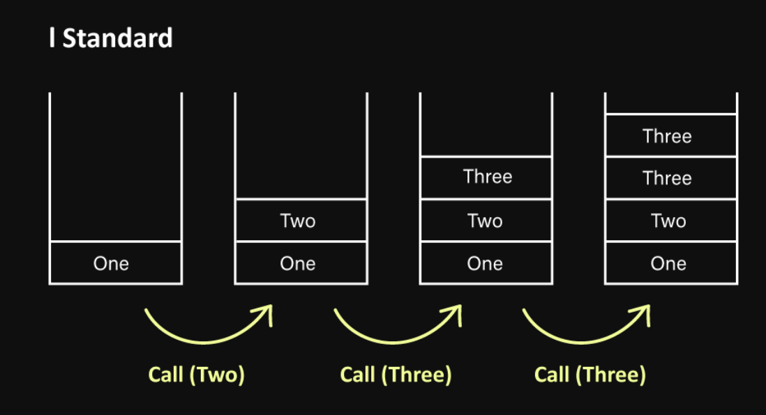 - 쌓여있던 스택은 남아있고, 새로운 스택공간이 하나 더 생긴다