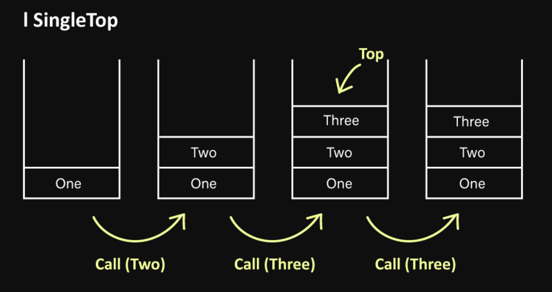 - 가장 위(Top) 엑티비티는 중복해서 쌓이지 않는다