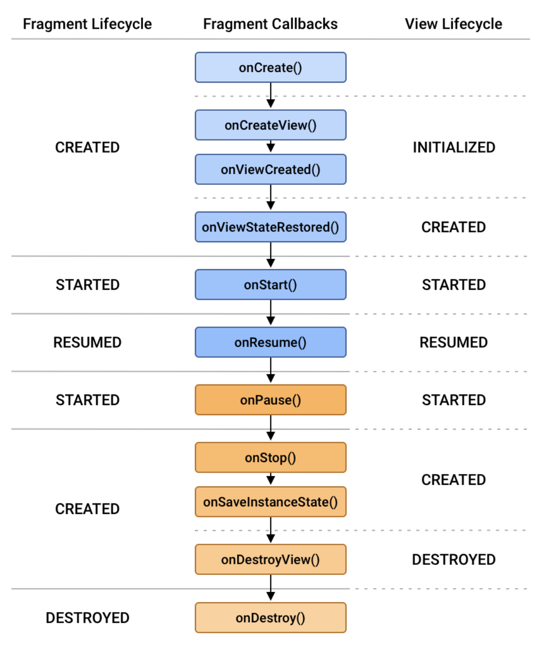 Fragment의 Lifecycle이 변화되는 순간 Fragment Callback 함수를 호출하게 되고, 해당 콜백 함수가 종료되는 시점에 View의 Lifecycle 에 이벤트를 전달하게 된다