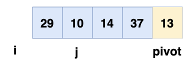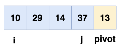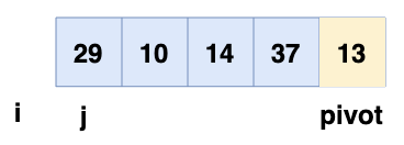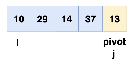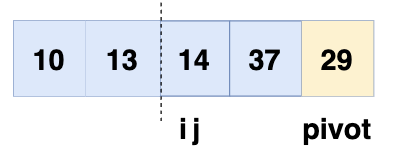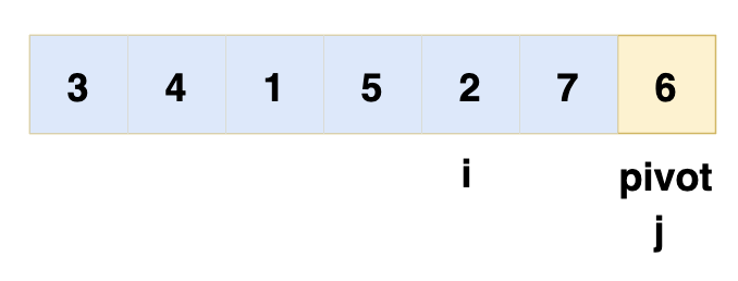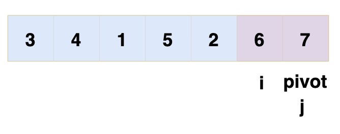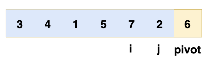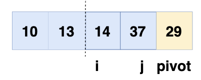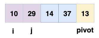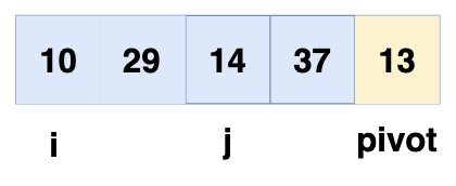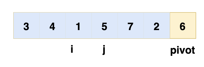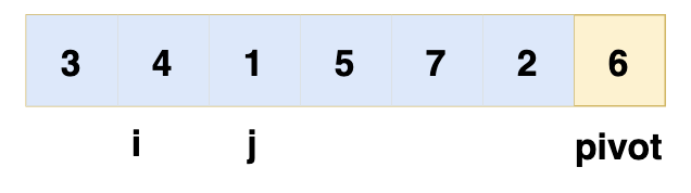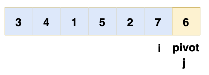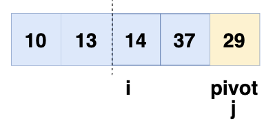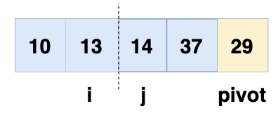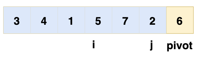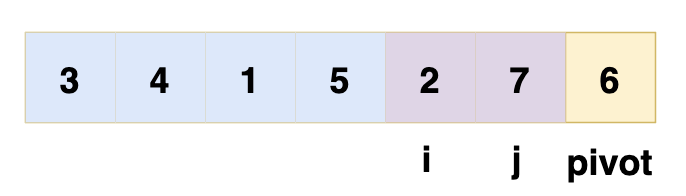 j가 pivot값에 도달하면 -> i를 1 증가시키고, i위치값과 pivot을 swipe