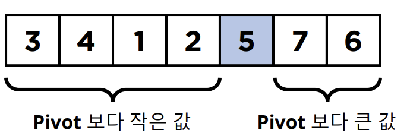 pviot값을 기준으로 왼쪽에는 pviot보다 작은값, 오른쪽에는 pviot보다 큰값이 위치하게된다.