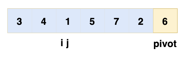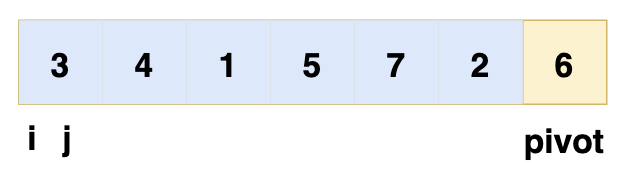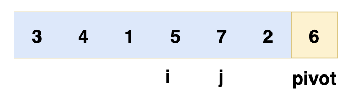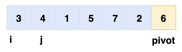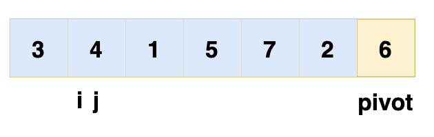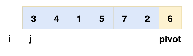 배열의 가장 오른쪽값을 pivot으로 사용하고(가장 왼쪽값으로 해도됨), 배열의 가장 왼쪽위치-1을 i로 둔다.