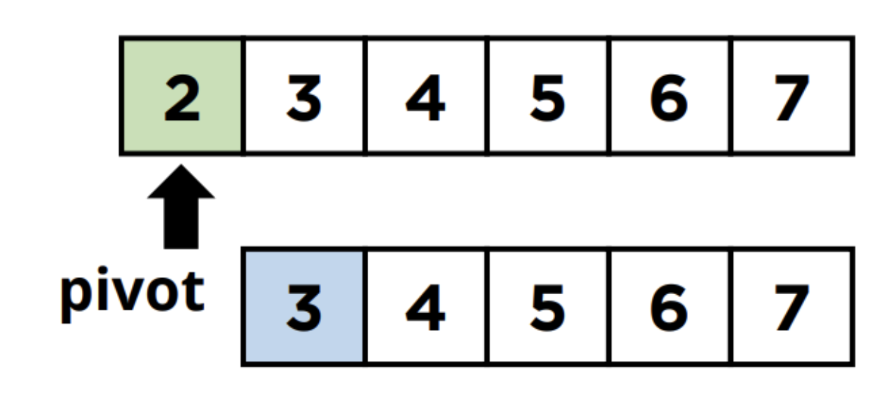 그럼 이제 pivot은 2가되고 또 아래 그림처럼 분할이 될것이다