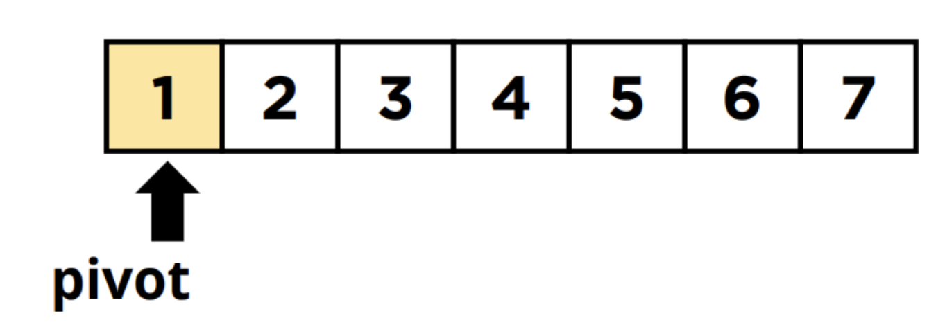 예를들어, 오름차순으로 되어있는 리스트가 있는데, 가장 앞에있는 1의 값을 pivot값으로 정했다고 가정해보자
