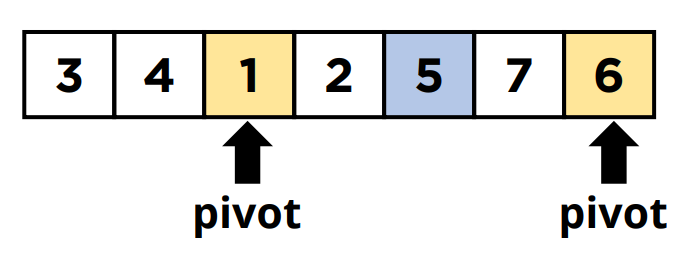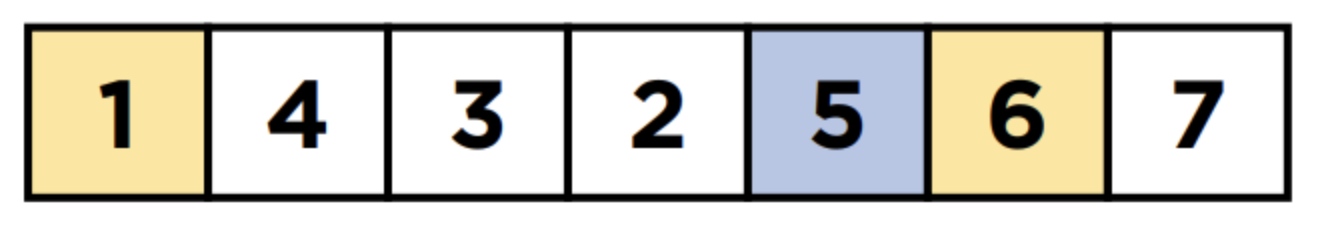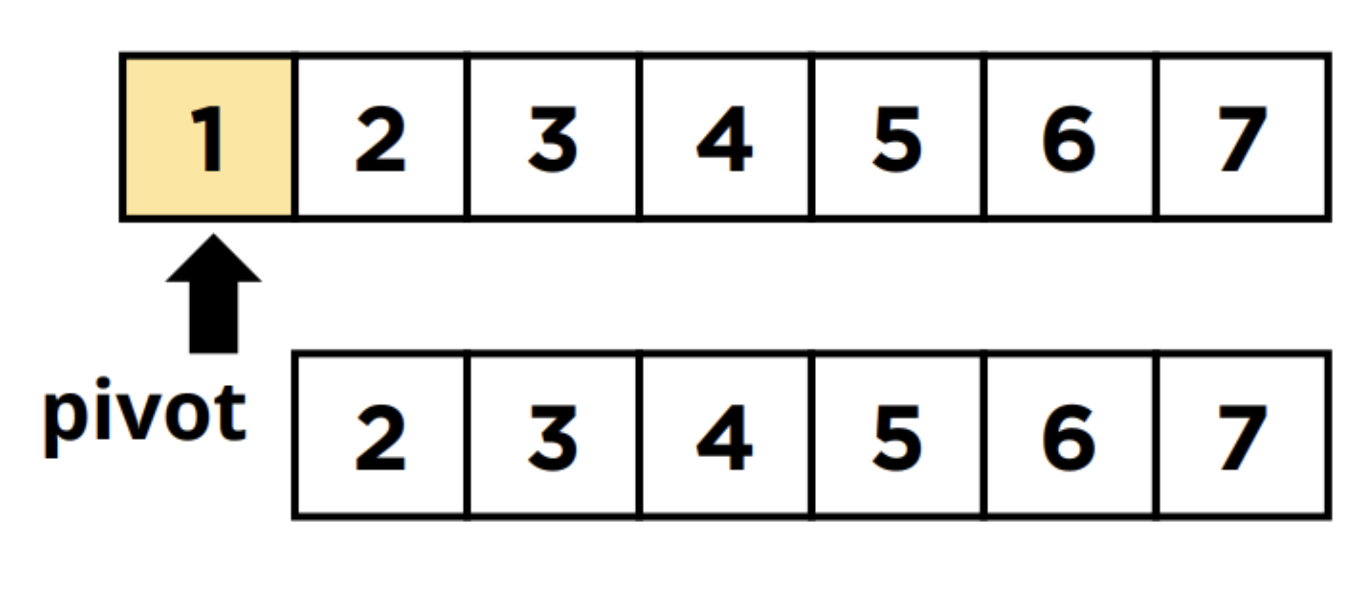 왼쪽의 리스트에서는 중간값인 1을 pivot값으로 설정하고, 오른쪽 리스트에서는 pivot값을 6으로 설정할 수 있다.