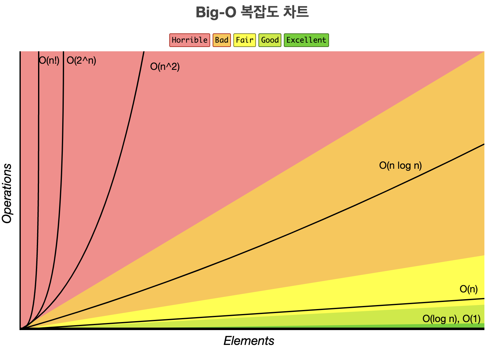 시간복잡도가 빠른순으로 보면 아래와 같이 나타낼 수 있다