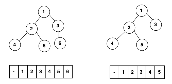 즉, 완전 이진트리는 1차원 배열에서 이렇게 빈틈없이 값을 채운 배열이 될 수 있다.