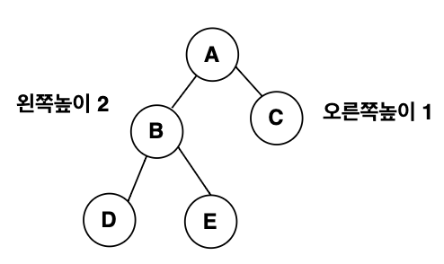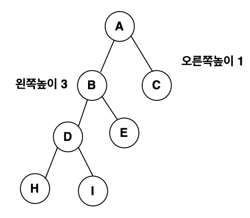 균형 이진트리는 왼쪽과 오른쪽 트리의 높이차이가 모두 1만큼 나는 트리이다.