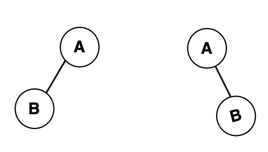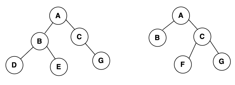 아래 그림은 A라는 같은 루트노드를 가지고있지만, 자식노드의 위치가 왼쪽,오른쪽 다르기때문에 두개의 트리는 별개의 트리(서로 다른 트리)가 된다.