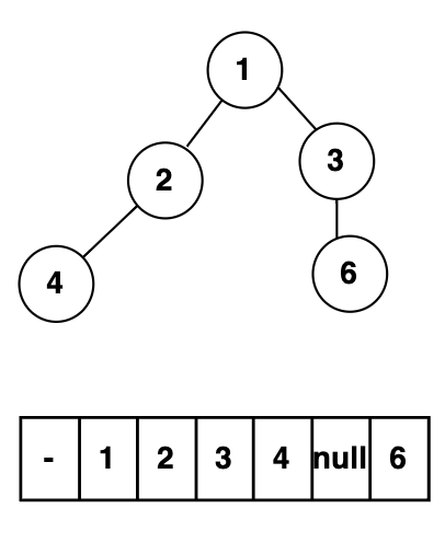 중간에 빈값이 있는 이진트리는, 1차원배열로 표현했을때 비어있는 공간의 인덱스에 null값으로 채워서 표현할 수 있다.