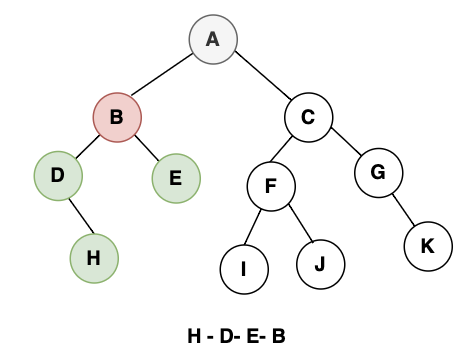따라서 후위탐색에서는 H노드를 가장먼저 탐색하게된다.