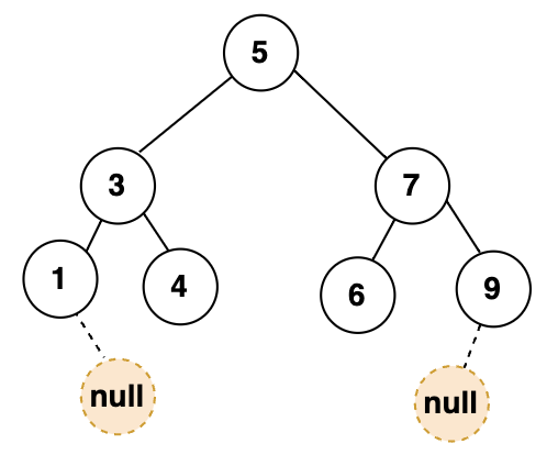 그래서 2를 삭제하면 부모노드였던 1은 오른쪽 자식노드로 null값을 가지게되고, 8을 삭제하면 부모노드였던 9는 왼쪽 자식노드로 null값을 가지게되면서 데이터가 삭제된다.