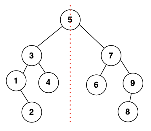 루트노드 5를 기준으로 왼쪽서브트리는 5보다 작은값, 오른쪽서브트리는 5보다 큰값이 들어가 있는것을 확인할 수 있다.