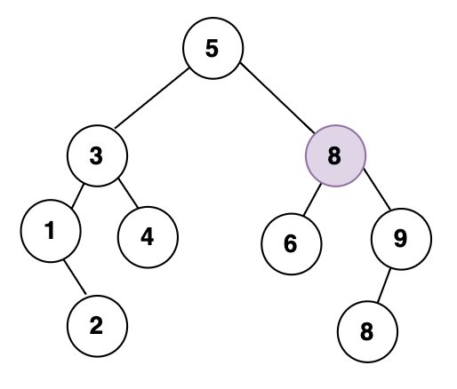 근데 이진탐색트리는 중복되는 데이터가 없어야되기 때문에, 중복되는 데이터인 리프노드에 있는 8노드를 삭제해줘야한다.
