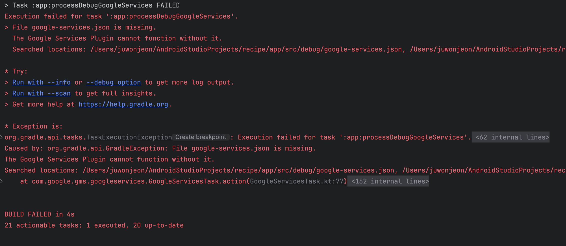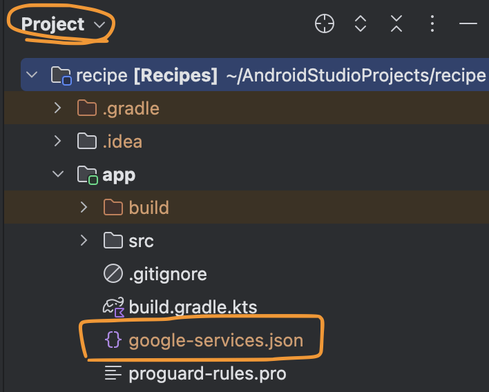 다운받은뒤 안드로이드 스튜디오로 넘어와서 해당 json파일을 project -> app폴더로 복붙해준다!!