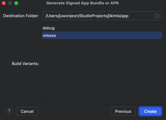 release를 누르고 create를 누르면 aab파일이 생성될것이다.