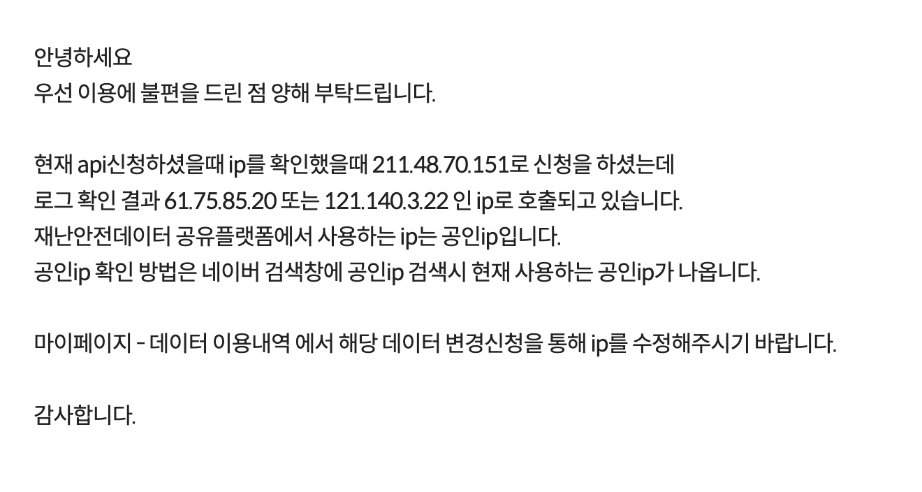 그래서 재난안전데이터 공유플랫폼에 문의해봄