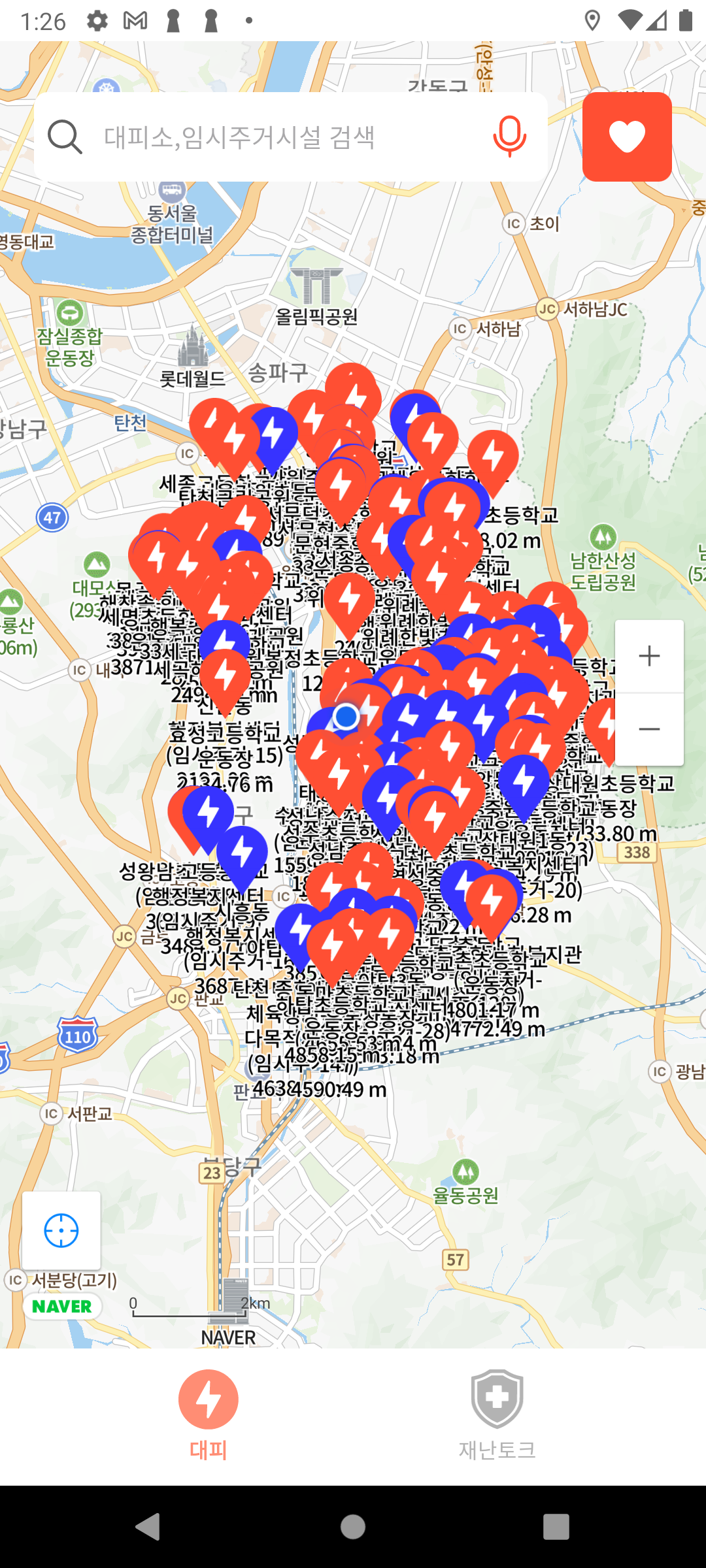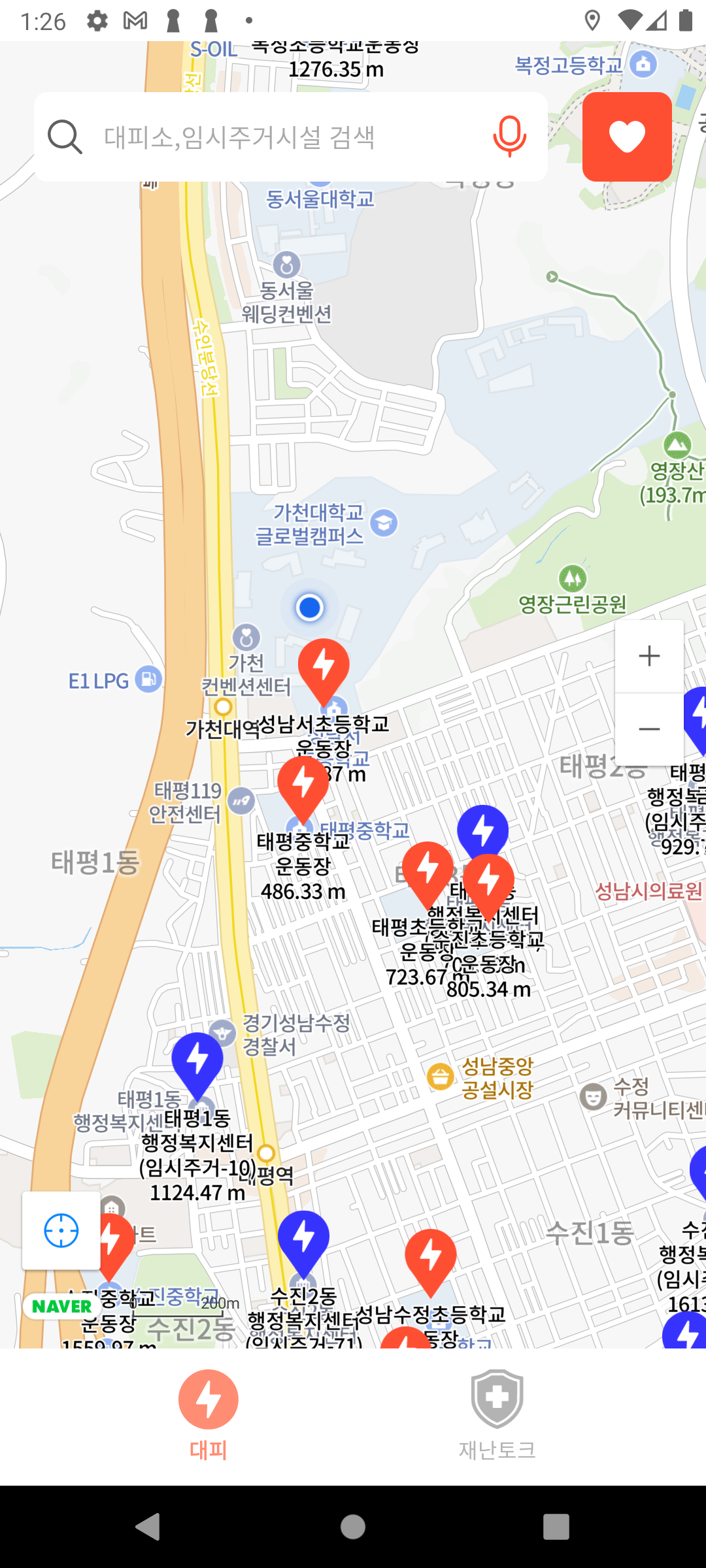 내 위치기반으로 5km이내의 가까운 대피소를 잘 보여주는것을 확인할 수 있다.