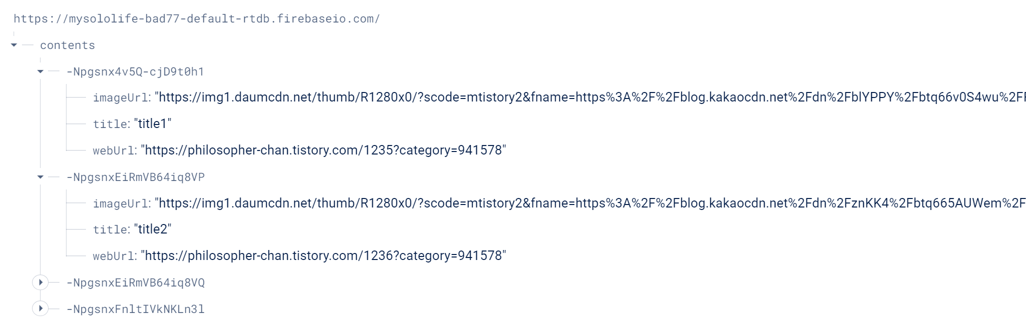 파이어베이스에 데이터를 넣어주지 않아서 발생한 오류라는 것을 알고 위와같이 contens2데이터를 넣어주었다!