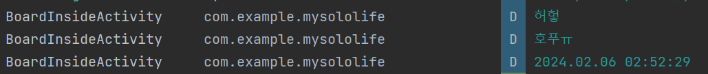 BoardInsideActivity에서는 방금 넘겨준 데이터를 받아온다