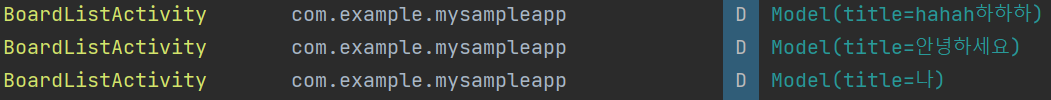 BoardListActivity에 아래와같이 코드를 짜준다. 로그값을 찍어서 값이 잘 나왔는지 확인해본다
